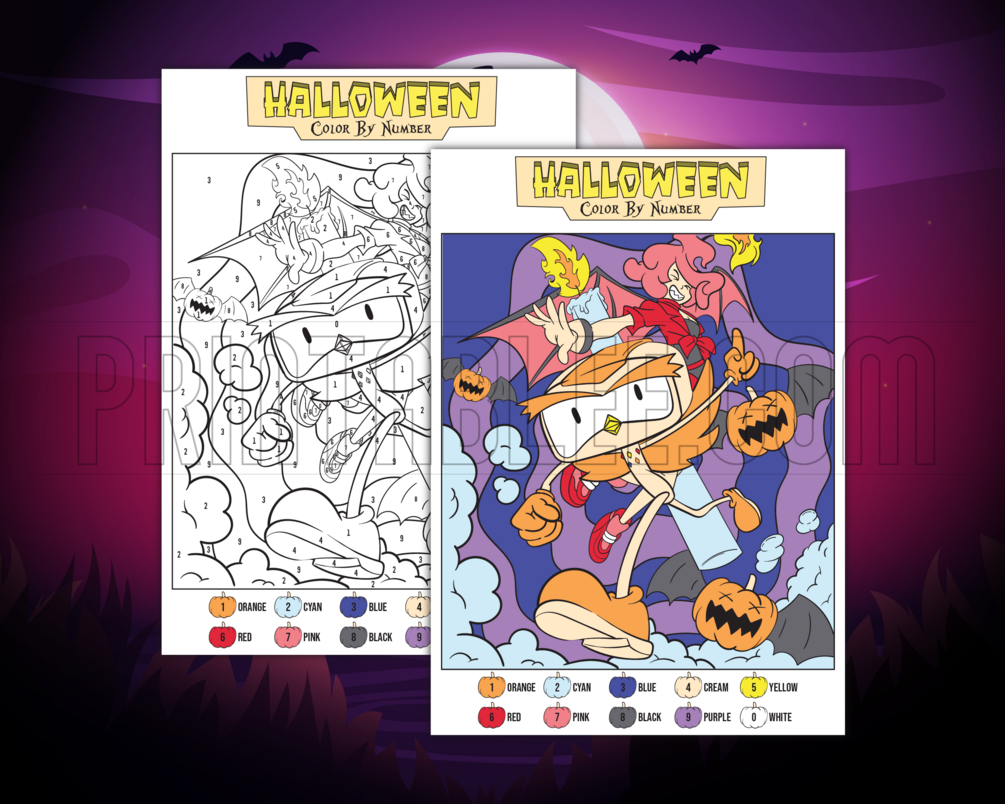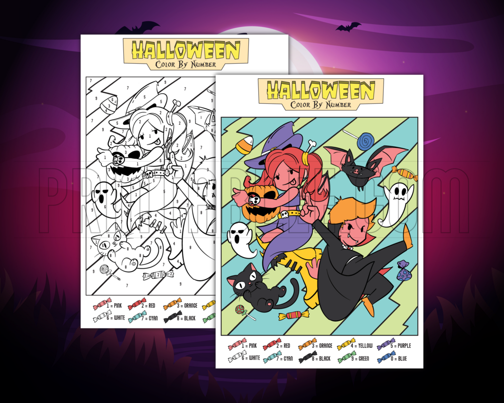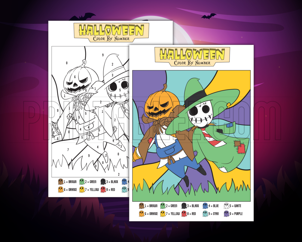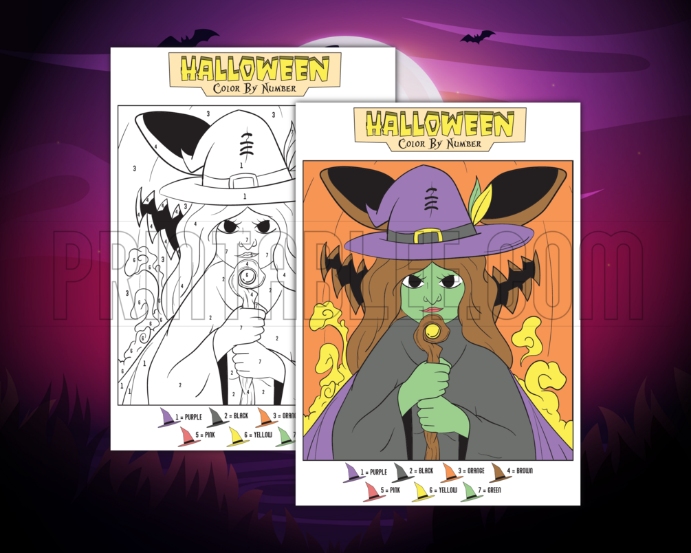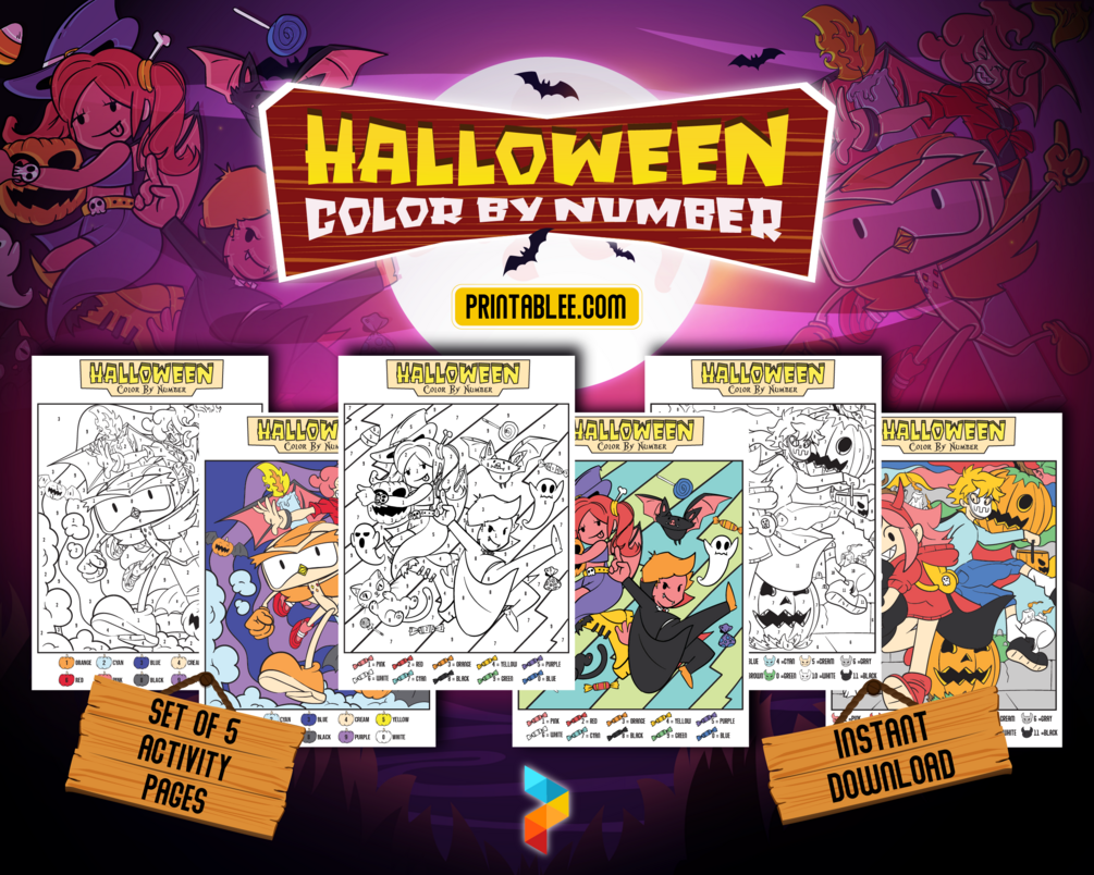 You'll get A PDF file with 5 pages of Halloween Color by Number